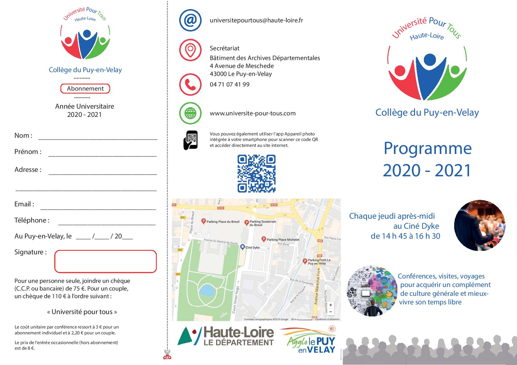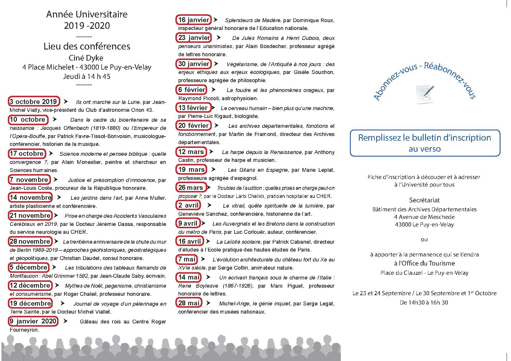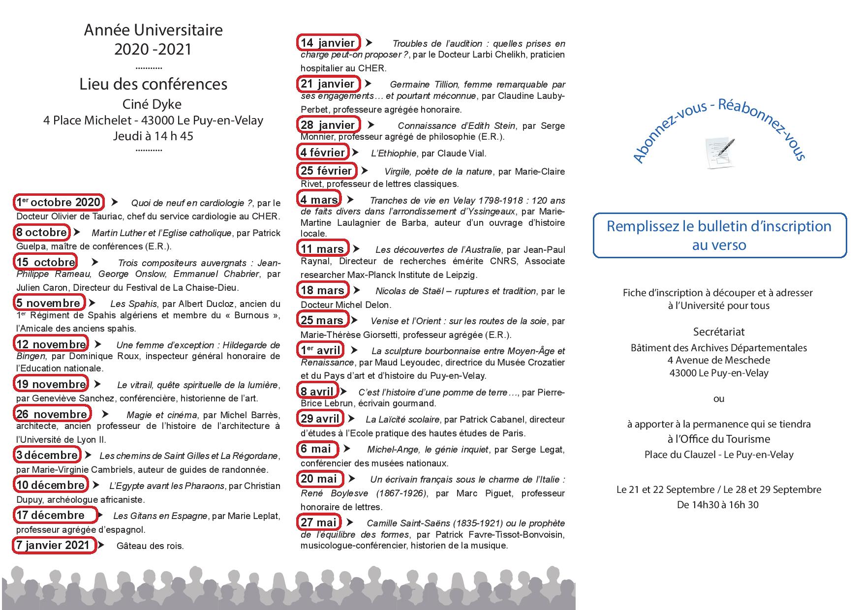 Prochaine conférence : jeudi 28 novembre 2019 à 14 h 45 au Ciné Dyke - Le Puy-en-Velay