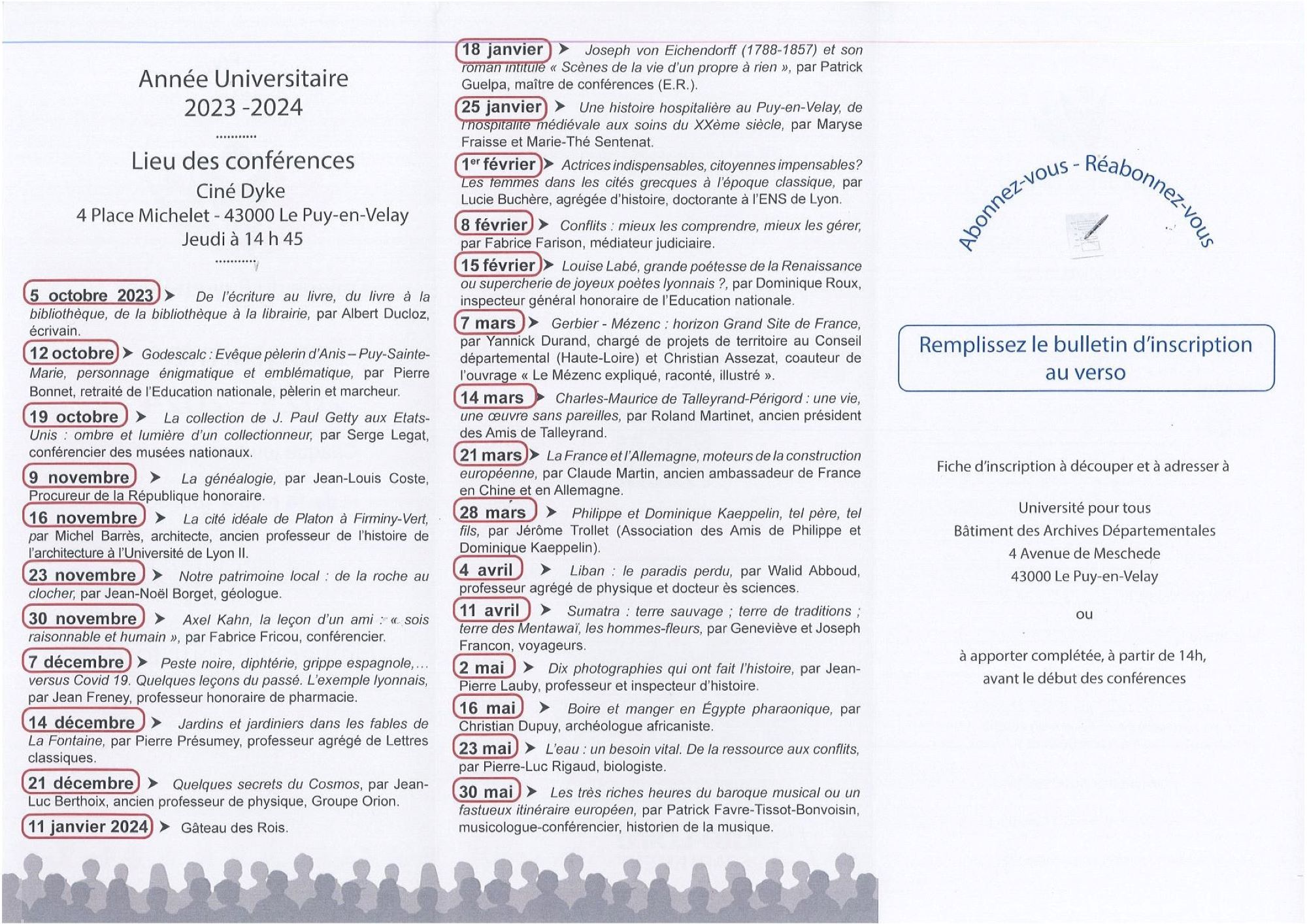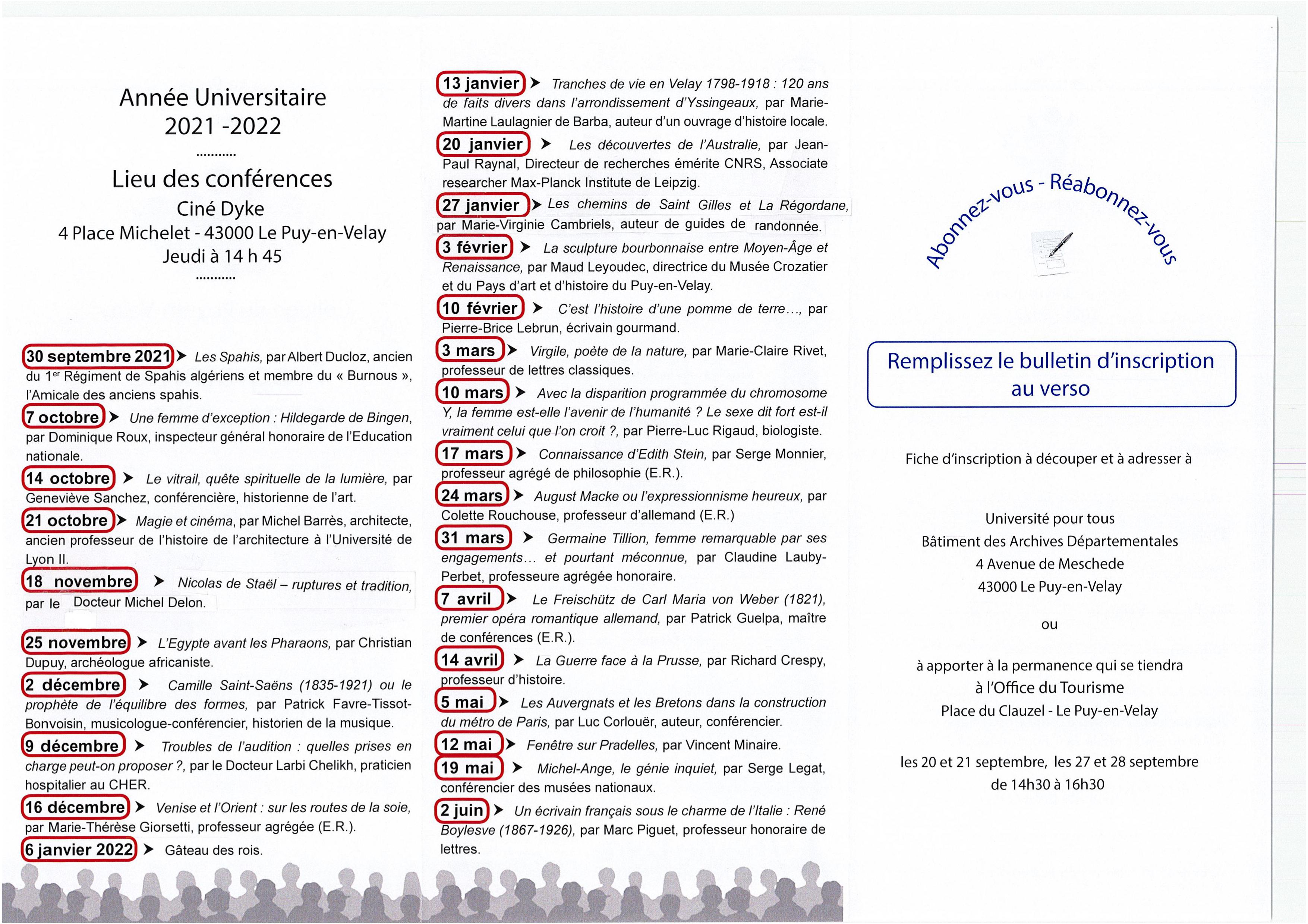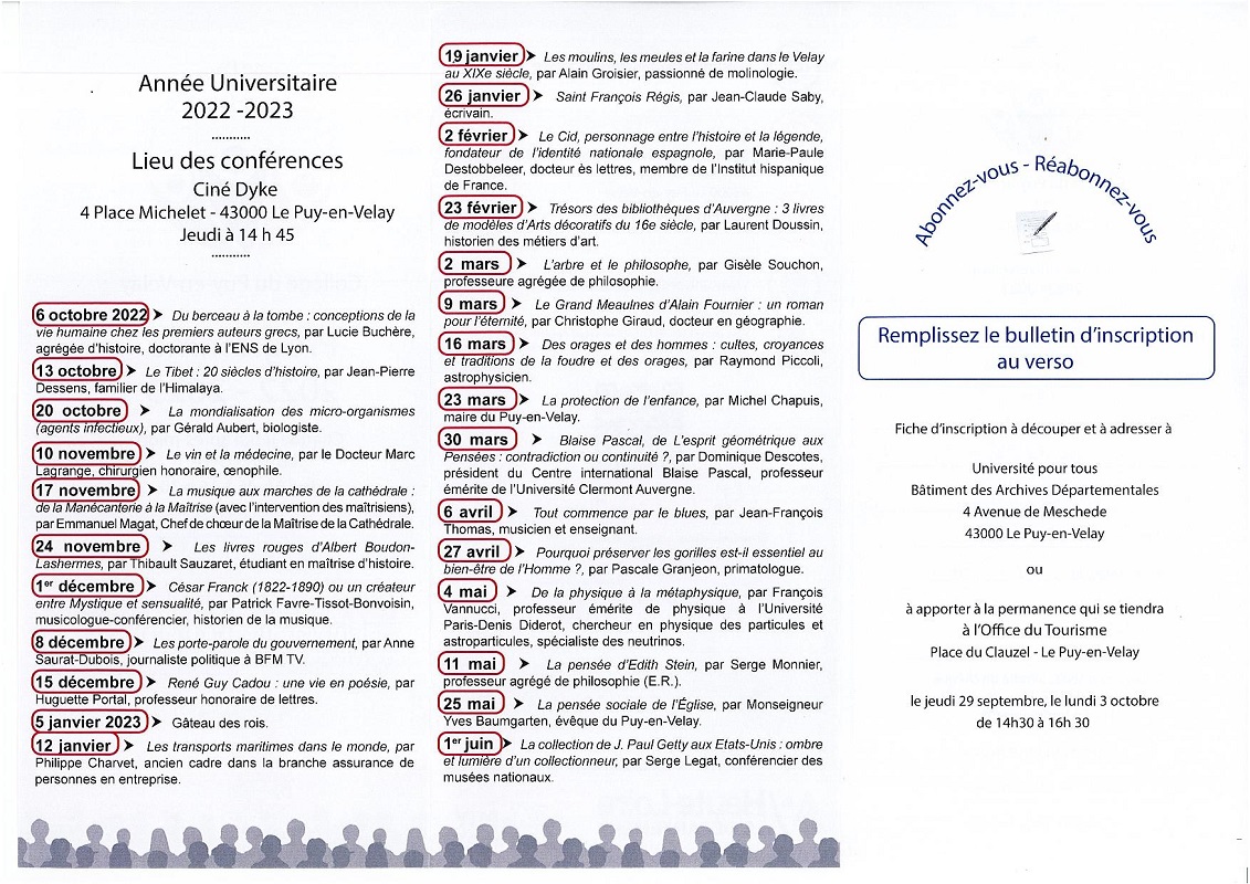 Prochaine conférence : 11 décembre 2025 à 14 h 45 au Ciné Dyke Le Puy-en-Velay