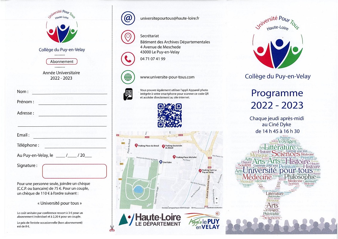 Prochaine conférence : jeudi 16 octobre 2025 à 14 h 45 au Ciné Dyke Le Puy-en-Velay