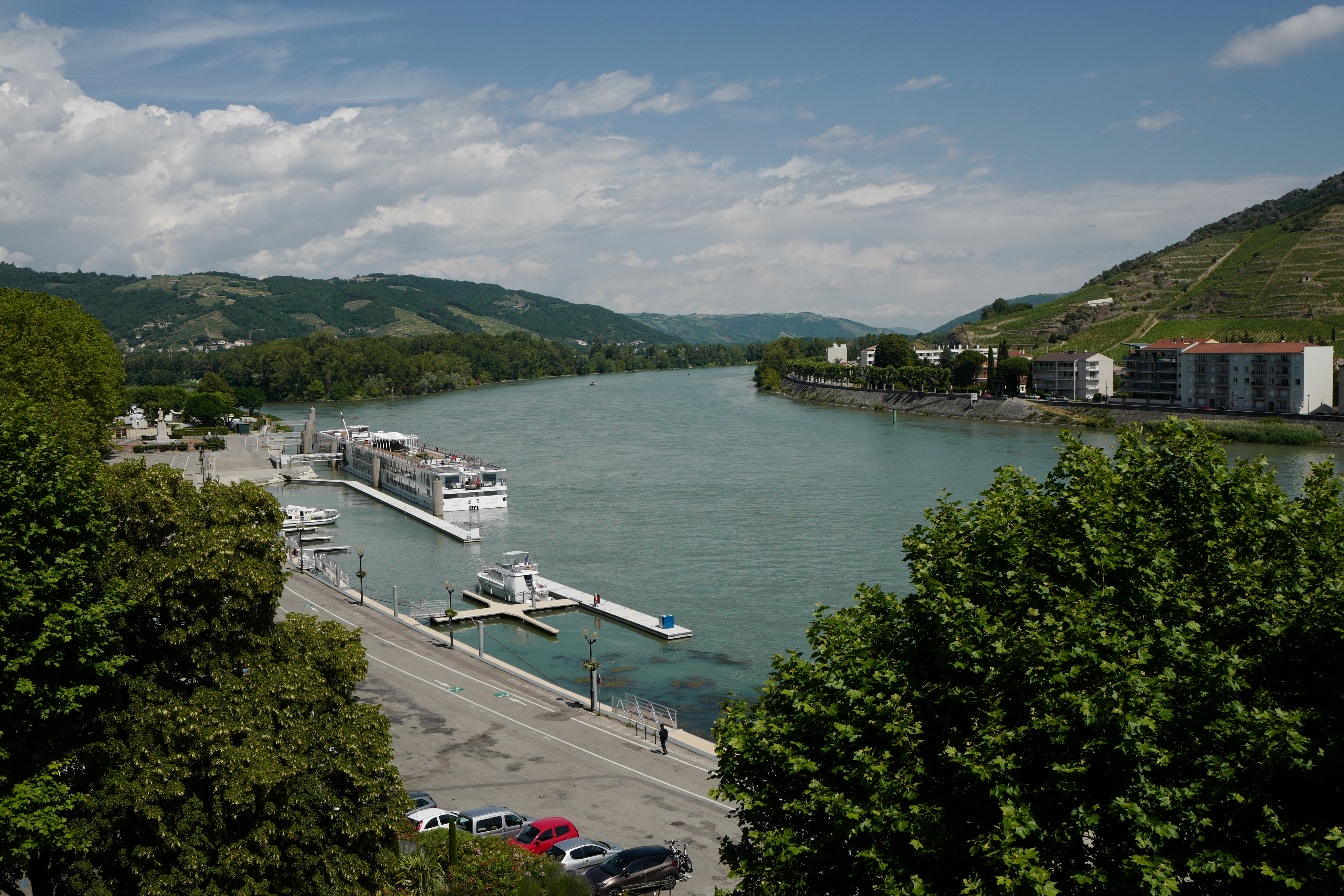 Le beau temps nous permet d'apprécier les vues depuis les terrasses du château sur Tournon et sur