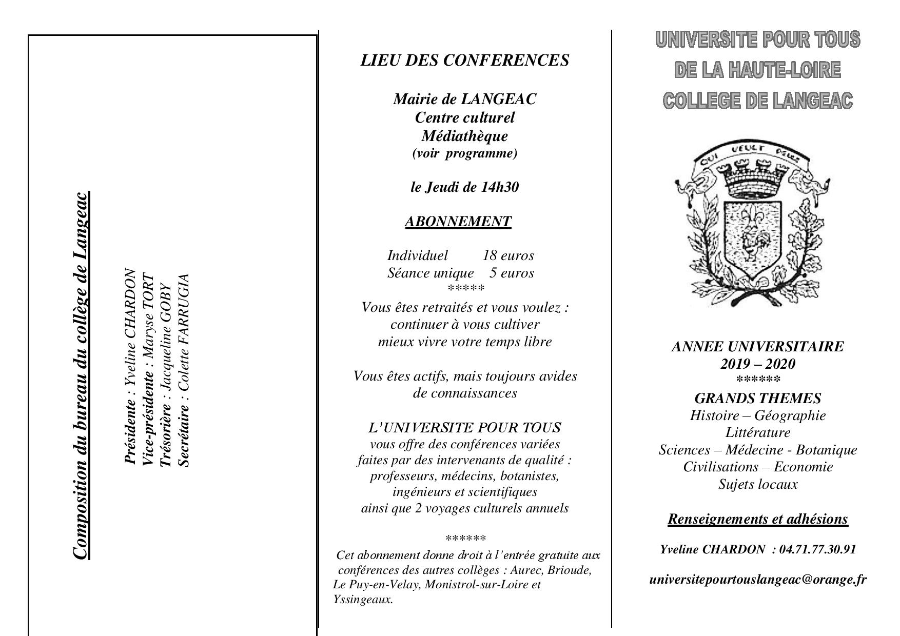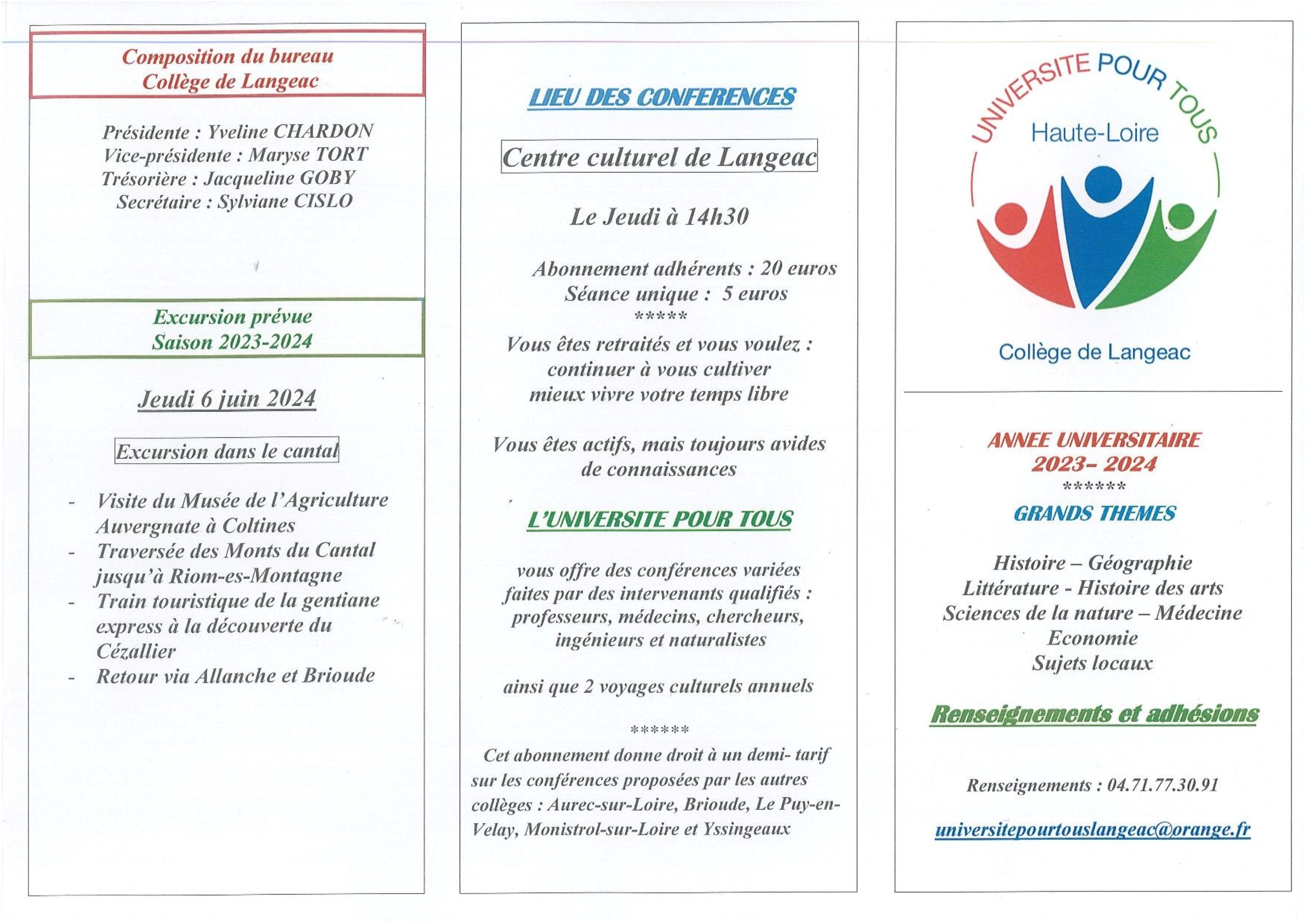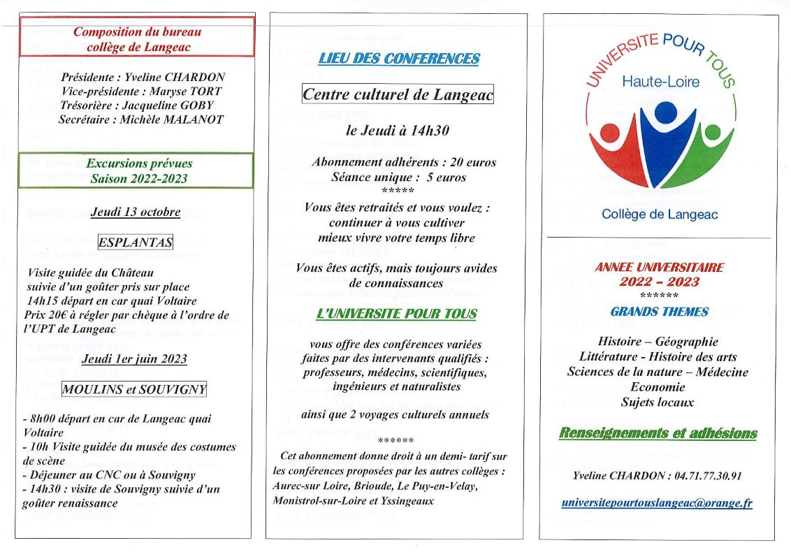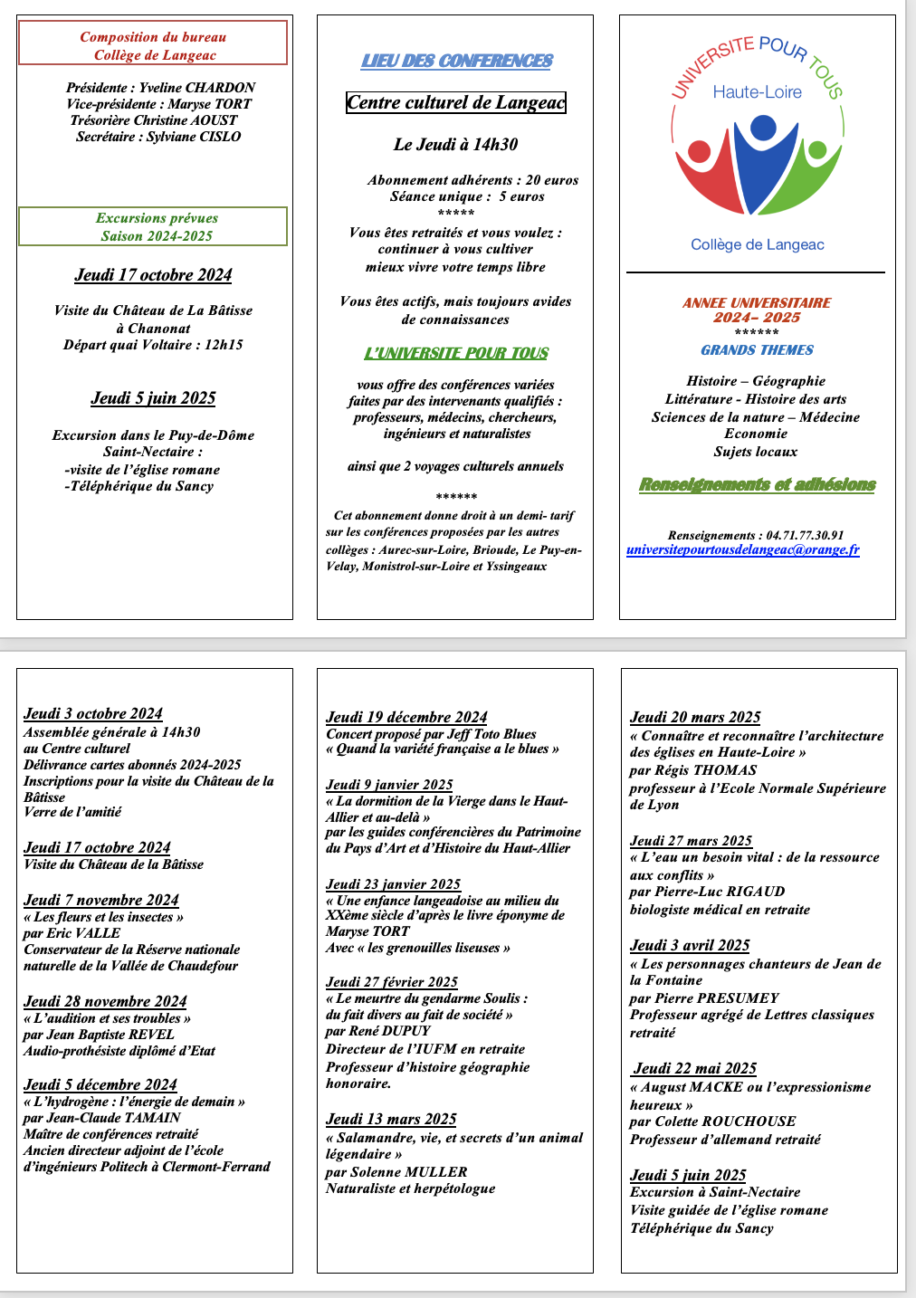 Programme 2025-2026 du collège d'université pour tous de Langeac