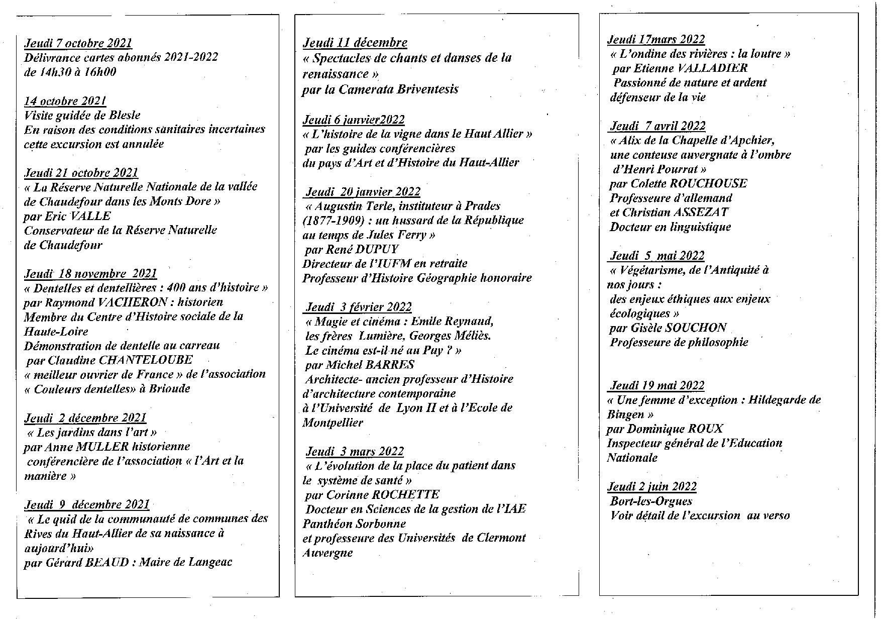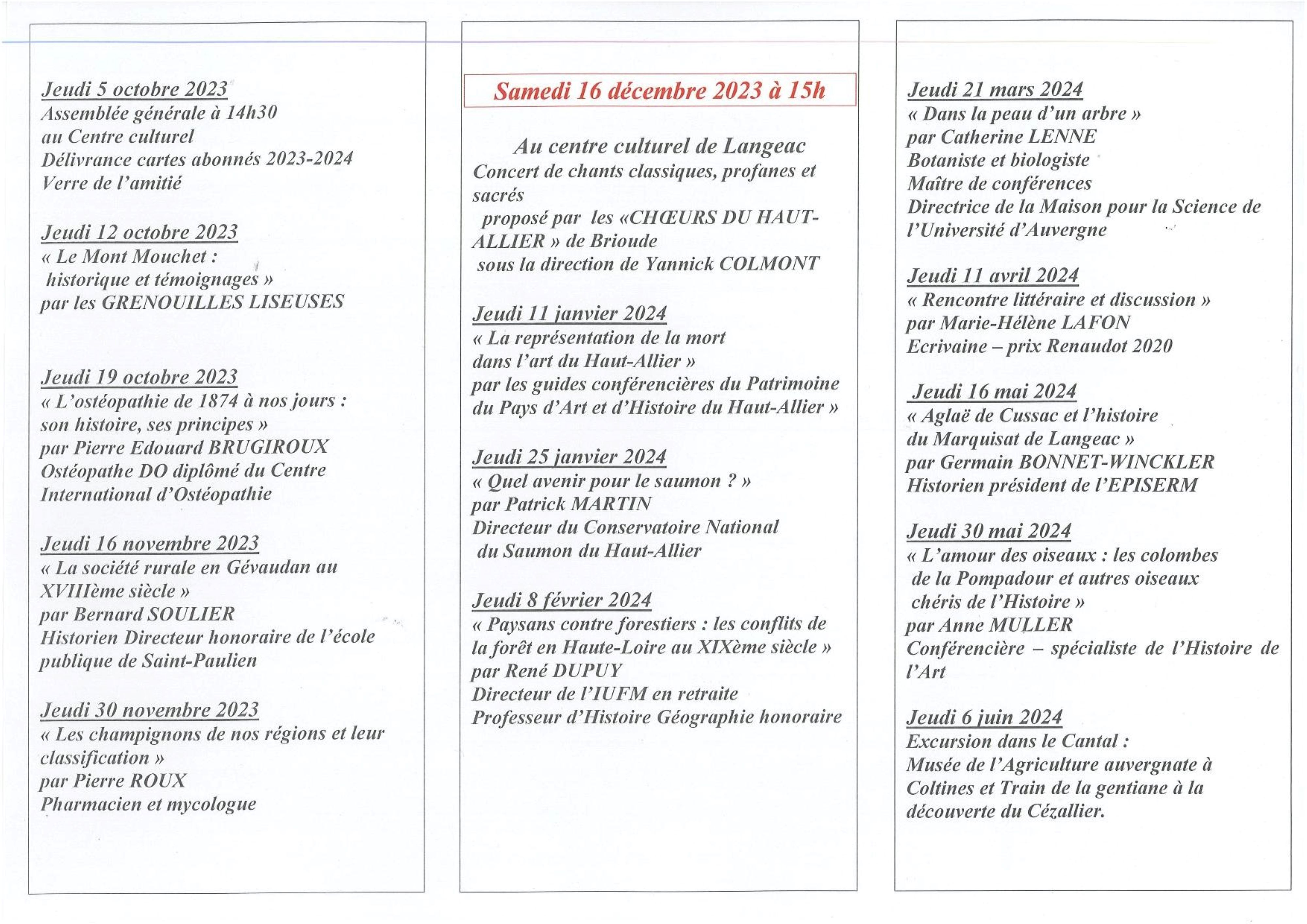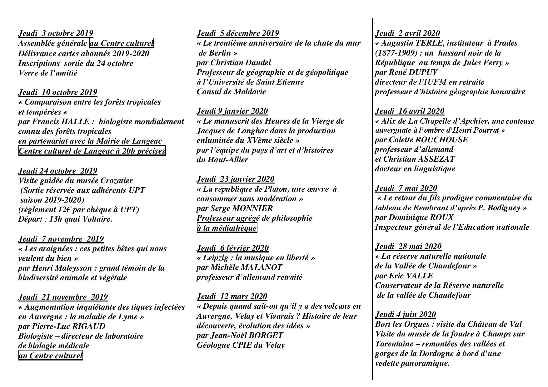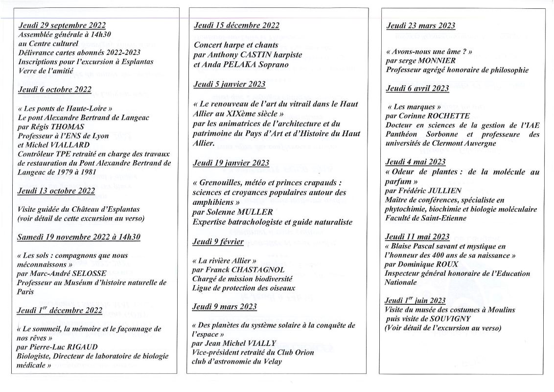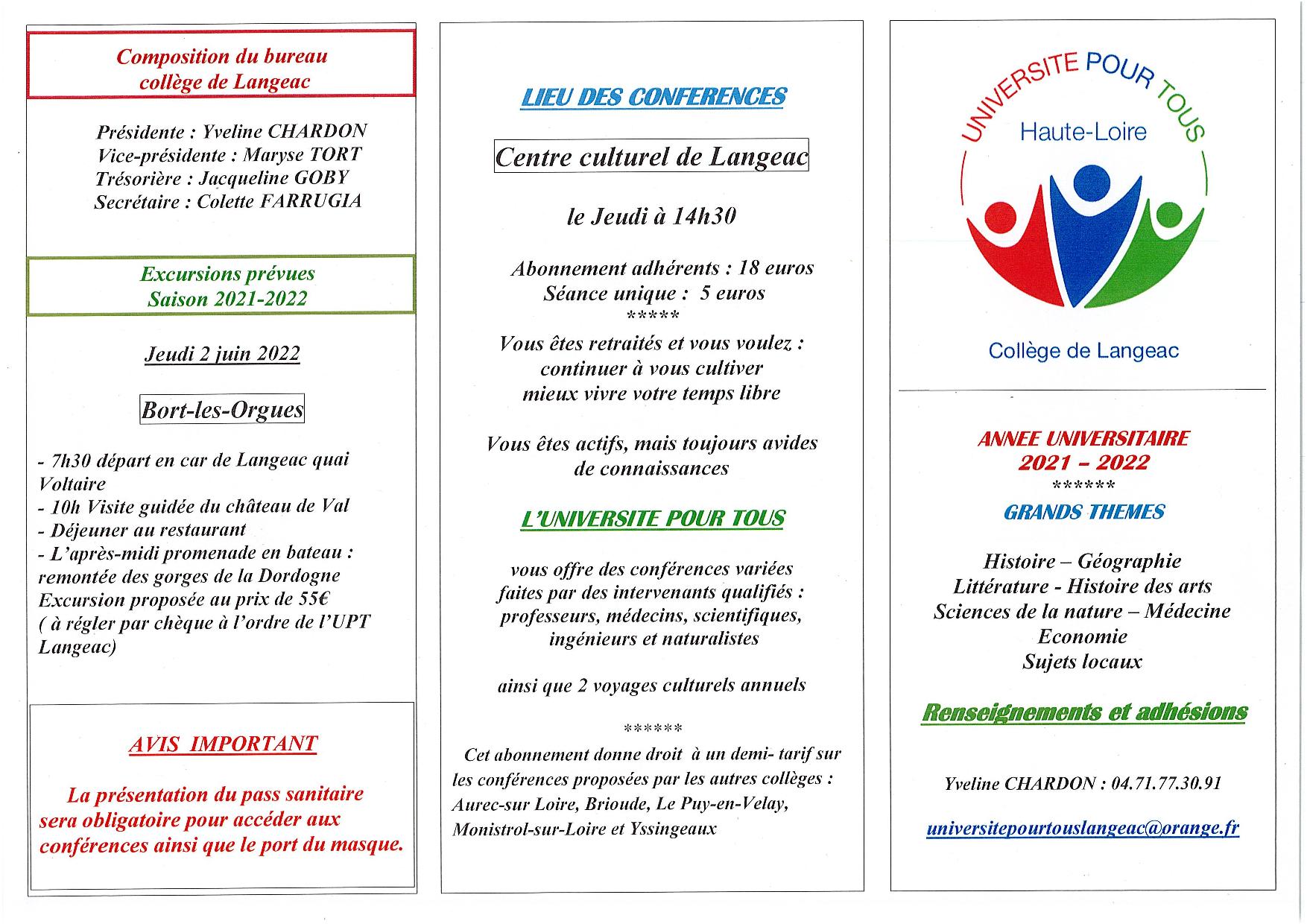 Programme 2025-2026 du collège d'université pour tous de Langeac